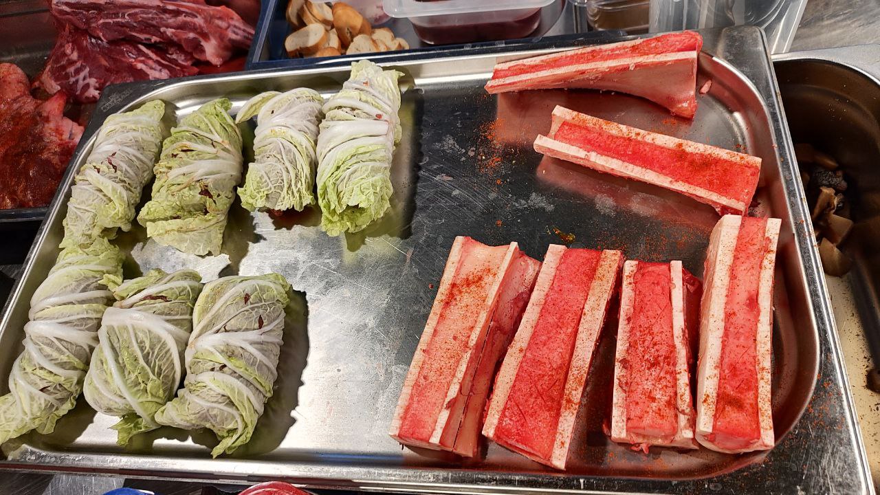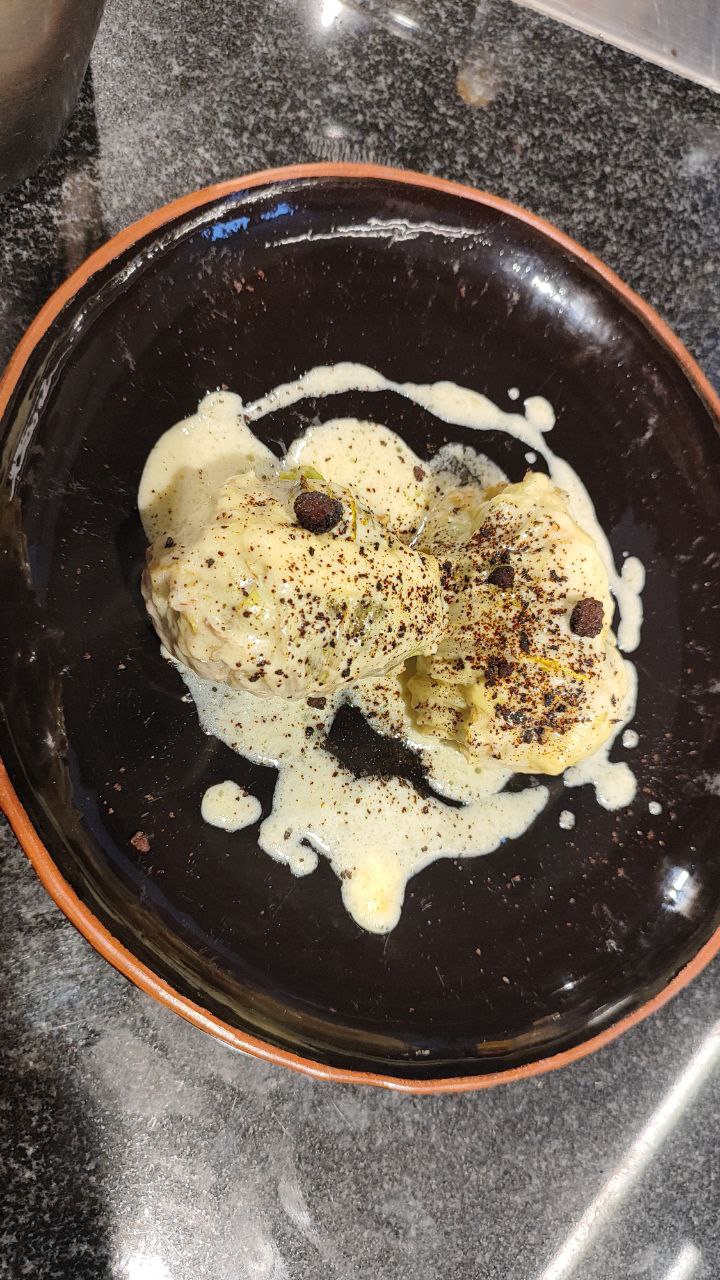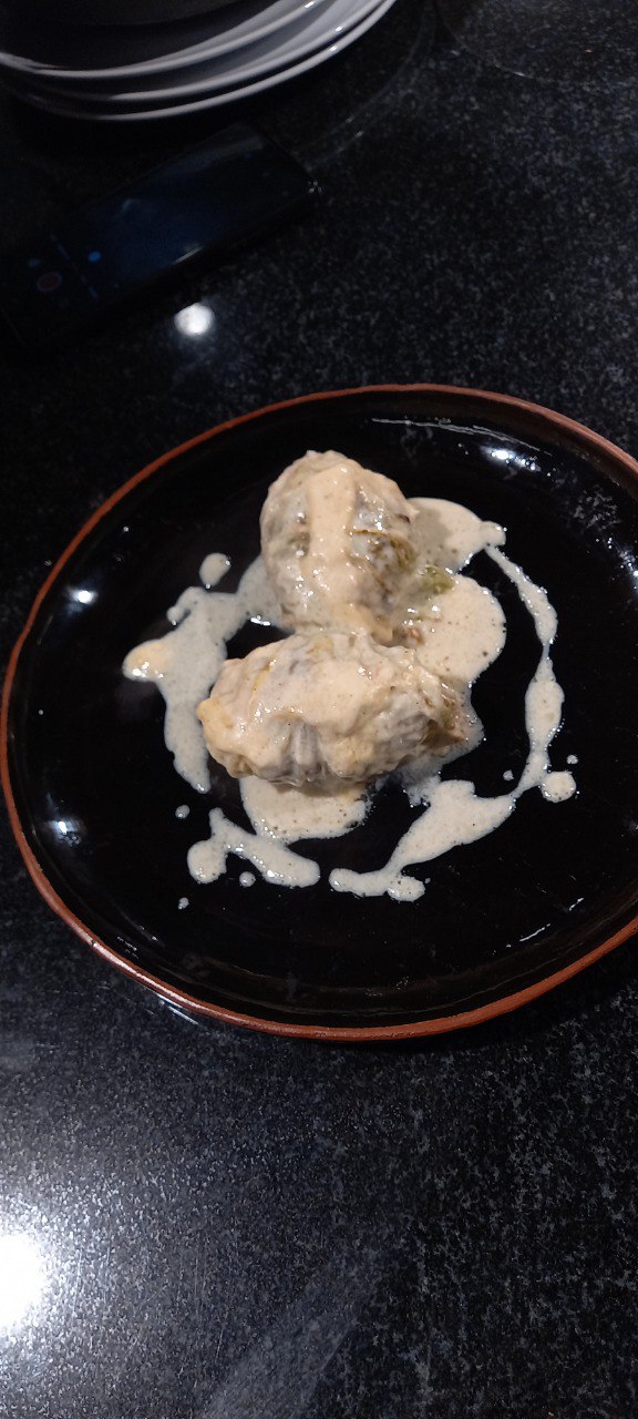 • Голубцы из косули с кус кусом в пекинской капусте соусом бешамель.