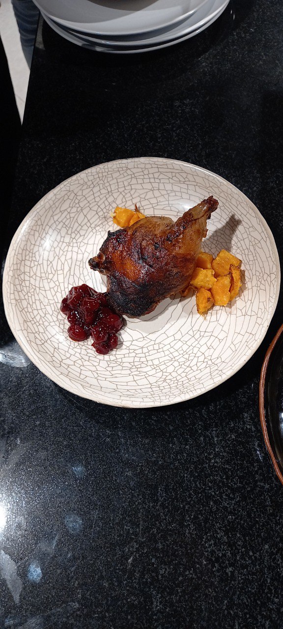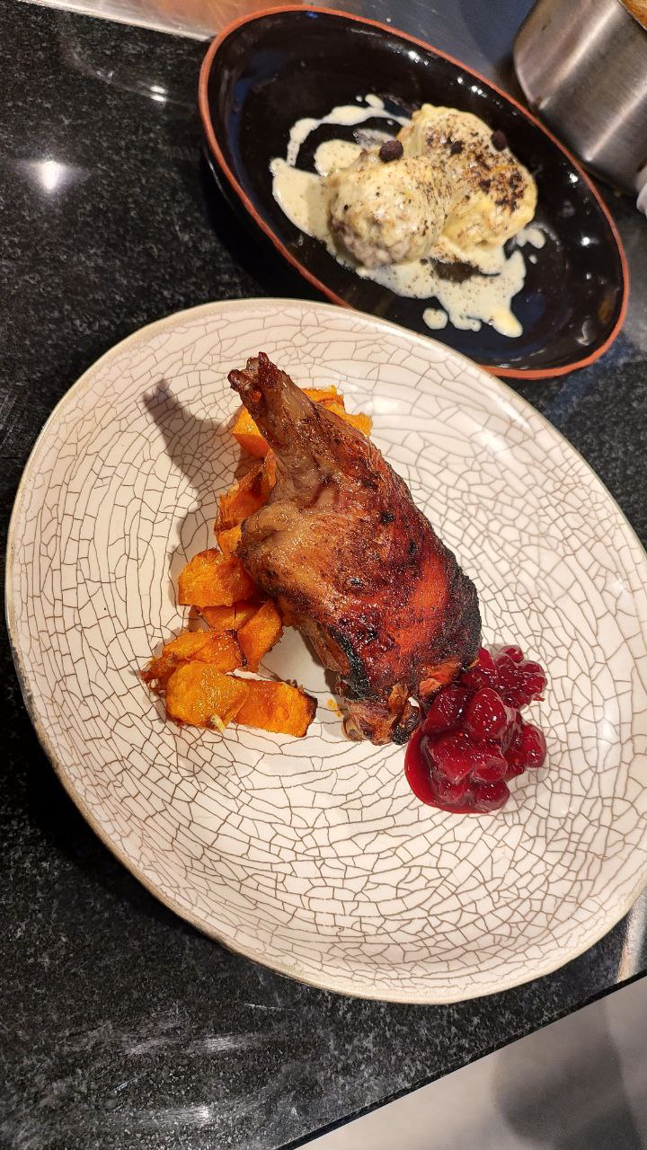 • Жаренное бедро нутрии с тыквой печеной и соусом из клюквы .