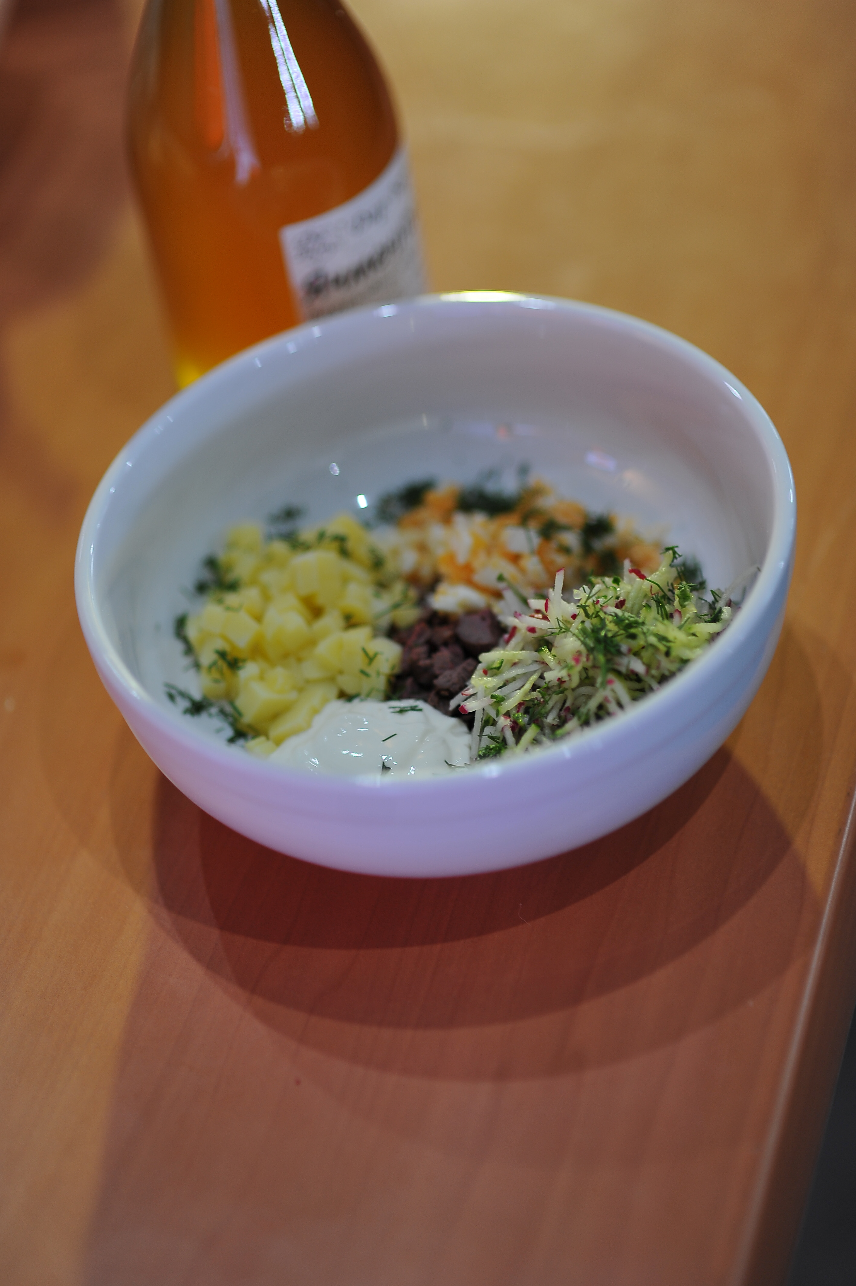 - Окрошка на белом квасе из березового сока с дичью;
