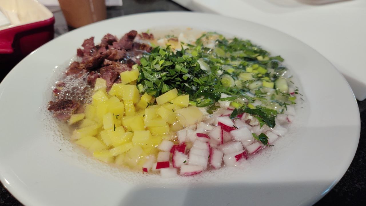 - Окрошка на белом квасе с дичью;